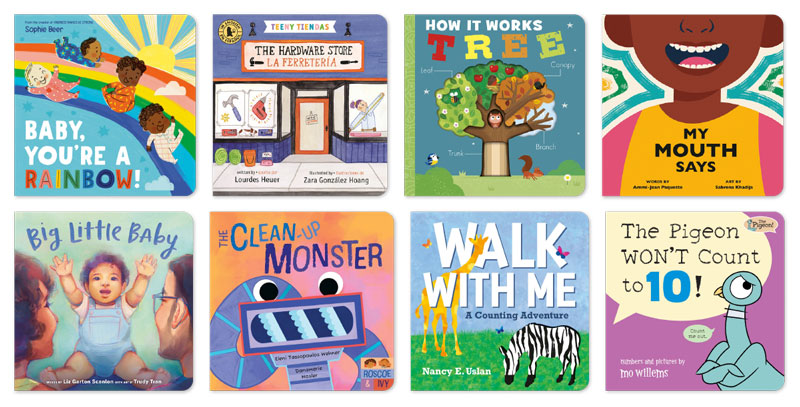 From a first-words title on the hardware store to Mo Willems’s counting book featuring The Pigeon, these sturdy volumes will engage little ones.